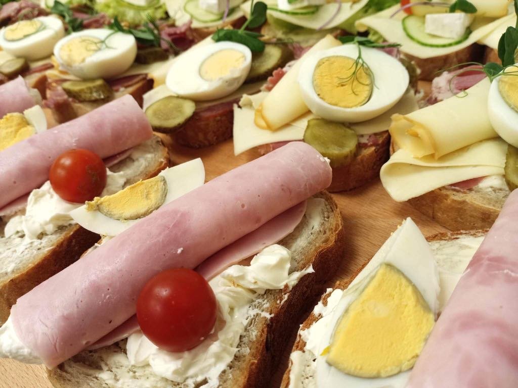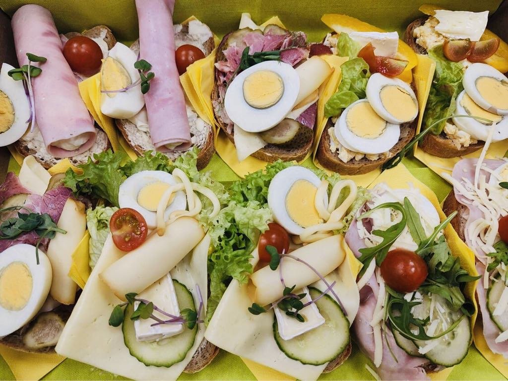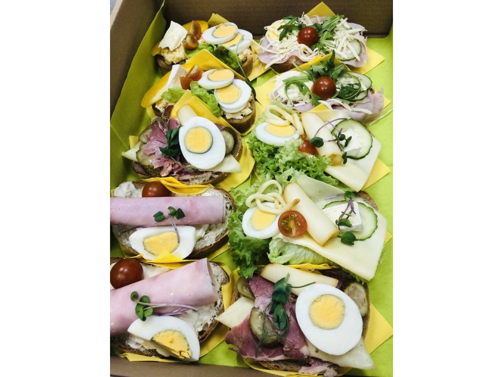 2X PARÍŽSKY (PRAŽSKÁ ŠUNKA, MASLO, PARÍŽSKY ŠALÁT, VAJÍČKO, RAJČINA, SYR, RUKOLA) 2X MASLOVÝ (PRAŽSKÁ ŠUNKA, MASLO, SALÁMA, VAJÍČKO, RAJČINA, SYR, RUKOLA)