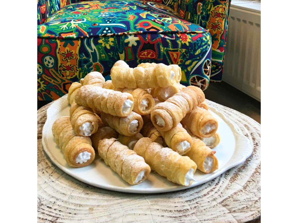 Šamrola je krehký trubičkový dezert z lístkového cesta, plnený nadýchaným snehom z vaječných bielkov. Jej jemná sladkosť a ľahká štruktúra ju robia neodolateľnou klasikou medzi zákuskami.